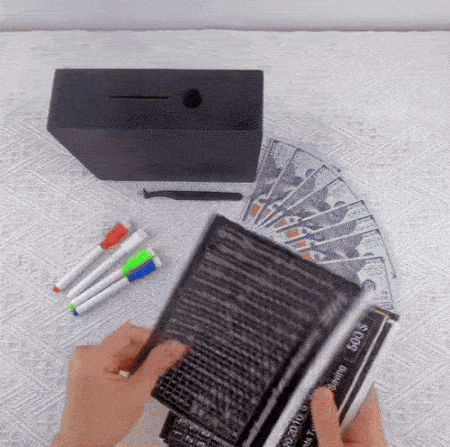Whenever you have a spare note by your side, just cross the number & put it into the saving box, without even noticing you will start to cross the numbers one by one and realize - that you have reached your goal!